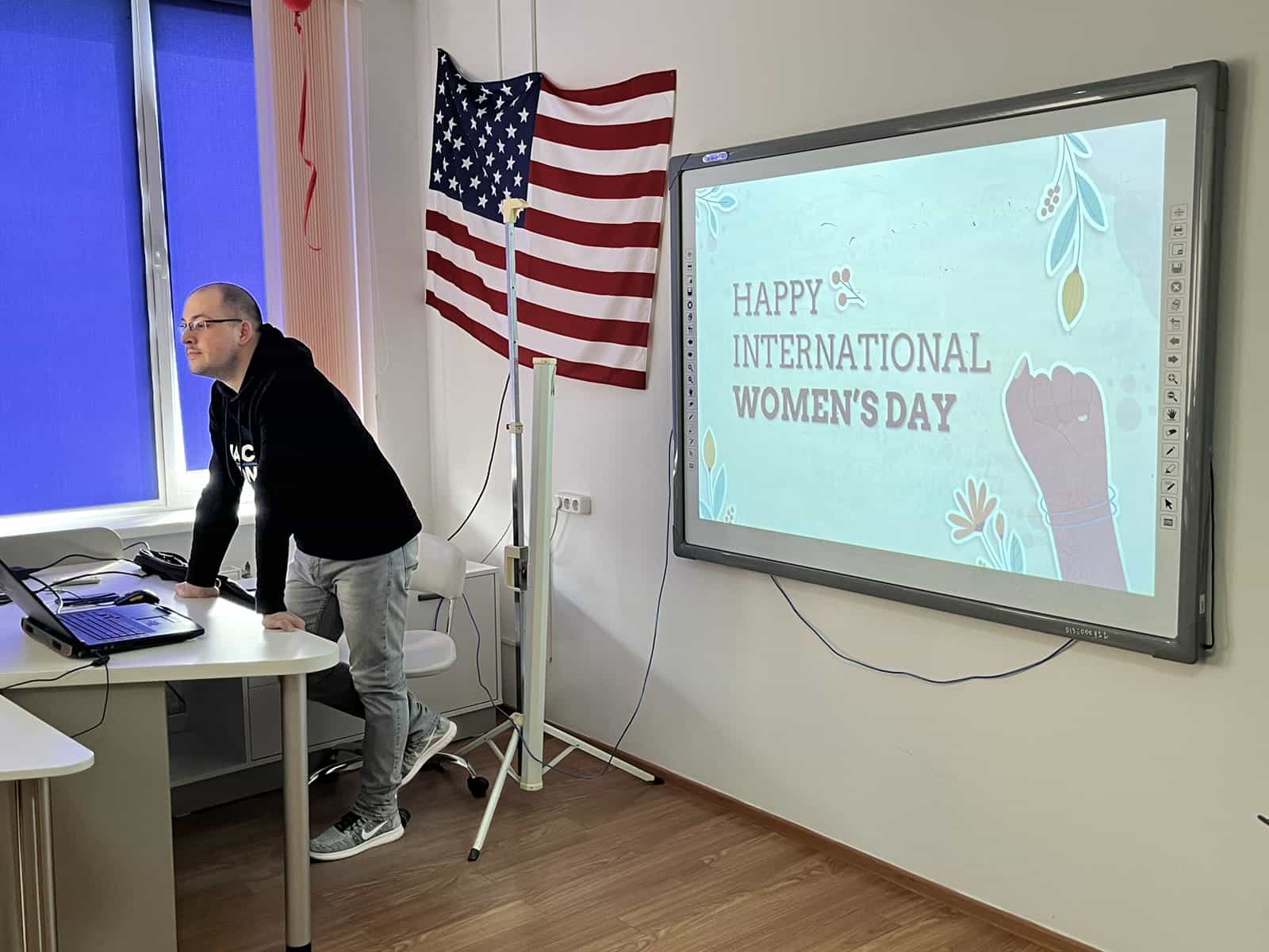Студенты КИЯ поздравили прекрасных девушек и женщин с этим долгожданным праздником. Гаргалык Илья подготовил интересный презентационный материал об истории праздника. Пометко Ольга презентовала шикарное видео, составленное из высказываний великих людей о женском празднике и о женщине в целом. Узун Светлана представила всем на внимание тематический кроссворд на разгадывание. Чавдарь Людмила организовала брейн-сторминг со словом «женщина». Все участники мероприятия имели возможность написать все понятия, ассоциирующиеся с данным словом. Табунщик Алина создала хорошее настроение у всех позволив принять участие в игре, посвященной образу женщины.