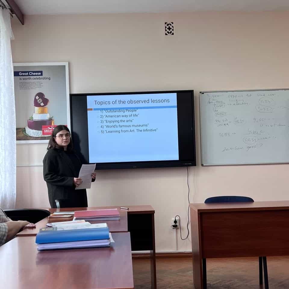 11 мая 2023г. на кафедре иностранных языков была проведена итоговая конференция по профессиональной стажировке студентов II цикла обучения в гр. МГЯ-22 по специальности «Преподавание германских языков в доуниверситетских учебных заведениях в полиэтничной среде».
