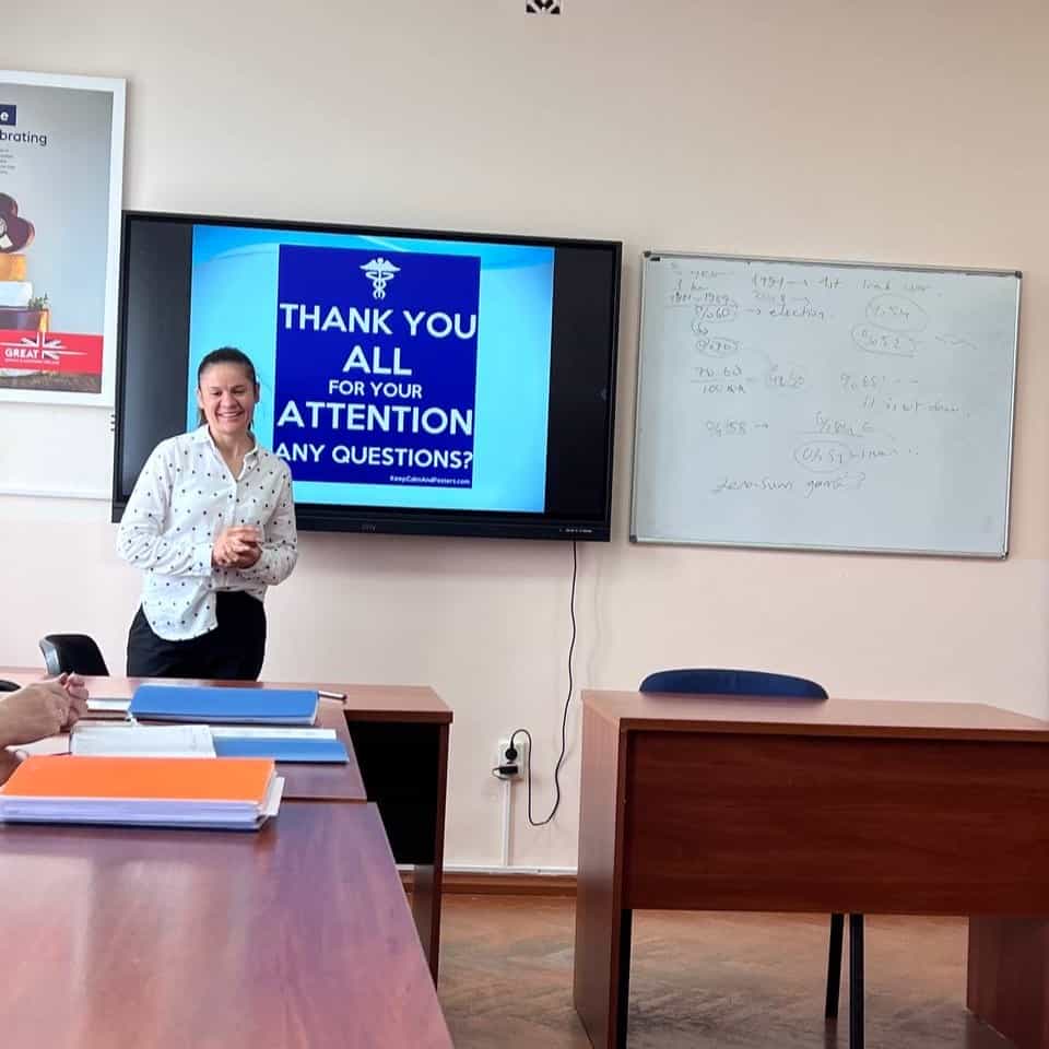 На итоговой конференции приняли участие: руководитель профессиональной стажировки, доктор, конференциар кафедры иностранных языков Сулак С.К.; доктор, конференциар кафедры иностранных языков Кирдякин А.А. и руководитель практики департамента менеджмента качества и учебного процесса Топал Л.Д.