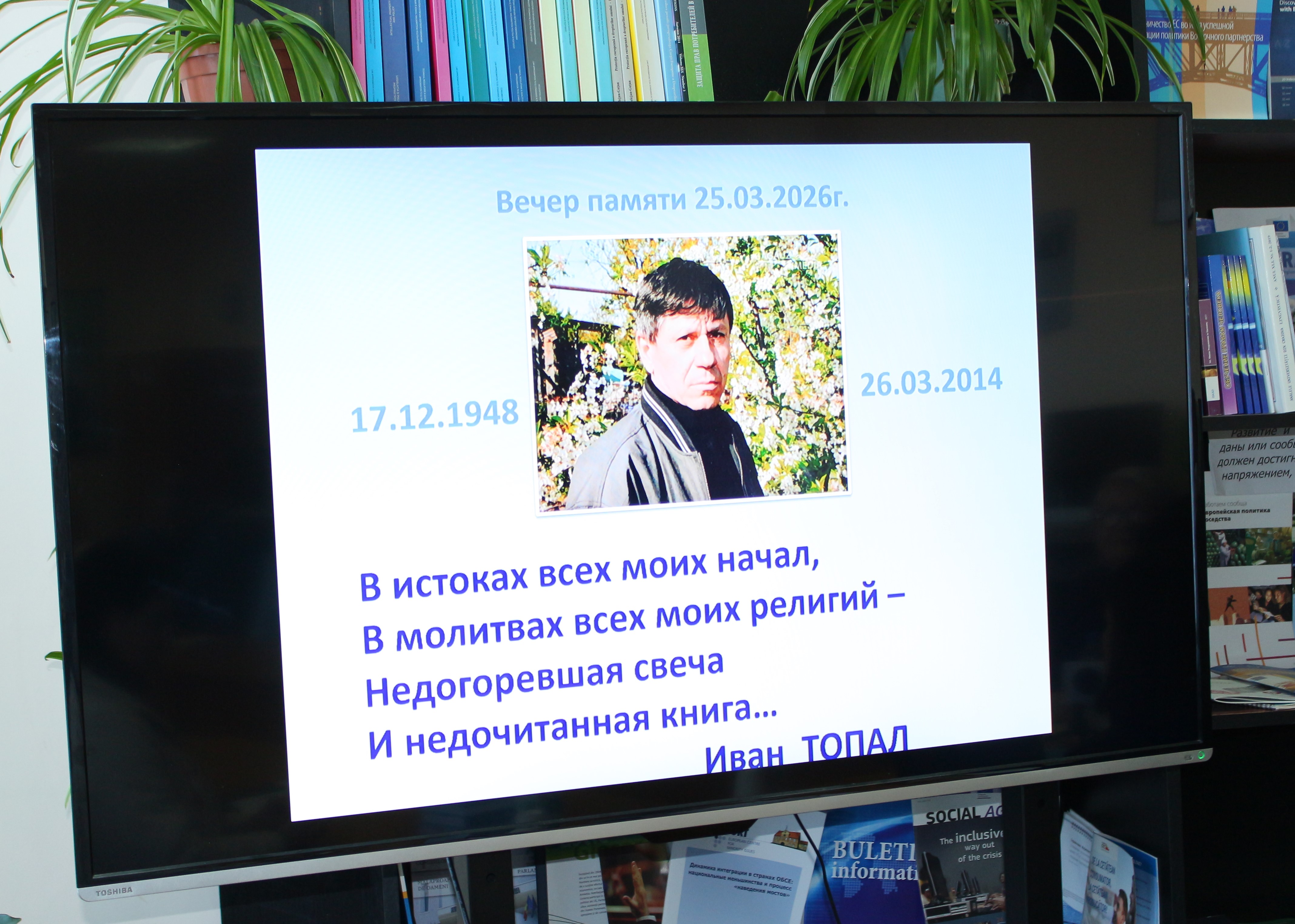 25 марта 2026 г. в читальном зале научной библиотеки Комратского университета состоялся вечер памяти, посвященный ТОПАЛУ Ивану Васильевичу (1948-2014) и презентация его книги «Обольщение свободой».